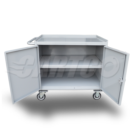 CARRO DE SERVICIO TOTALMENTE SOLDADO (EXCEPTO RUEDAS), DOS  CHAROLAS  DE  LáMINA CON PAREDES DE 1-1/2” DE ALTURA POSTES DE áNGULO DE 1/8" DE ESPESOR Y BASES CALIBRE 12 PARA RUEDAS.